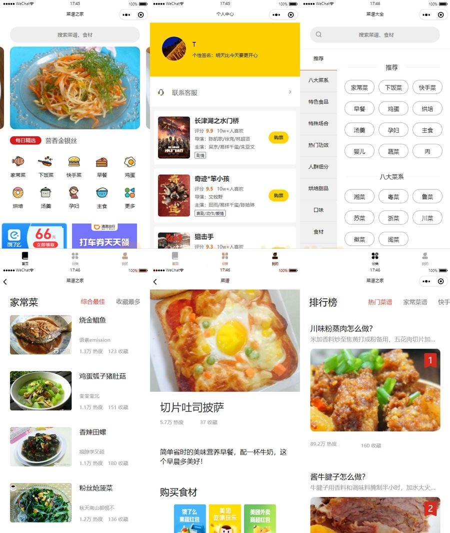仿京细菜谱微信小程序源码云开发菜谱微信小程序源码。京细菜谱是一个美食分享网站,提供优质的家常菜谱大全,仿京细菜谱小程序源码为喜欢美食的朋友提供了很多的美食烹饪教程,让您轻松学会做美食。对不同食材和地域的饮食做了不同的分类和详细的做菜方法,分类十分详细,八大菜系、特色食品、特殊场合、热门功效、人群细分、烘焙甜品、口味和食材分类的十分详细。