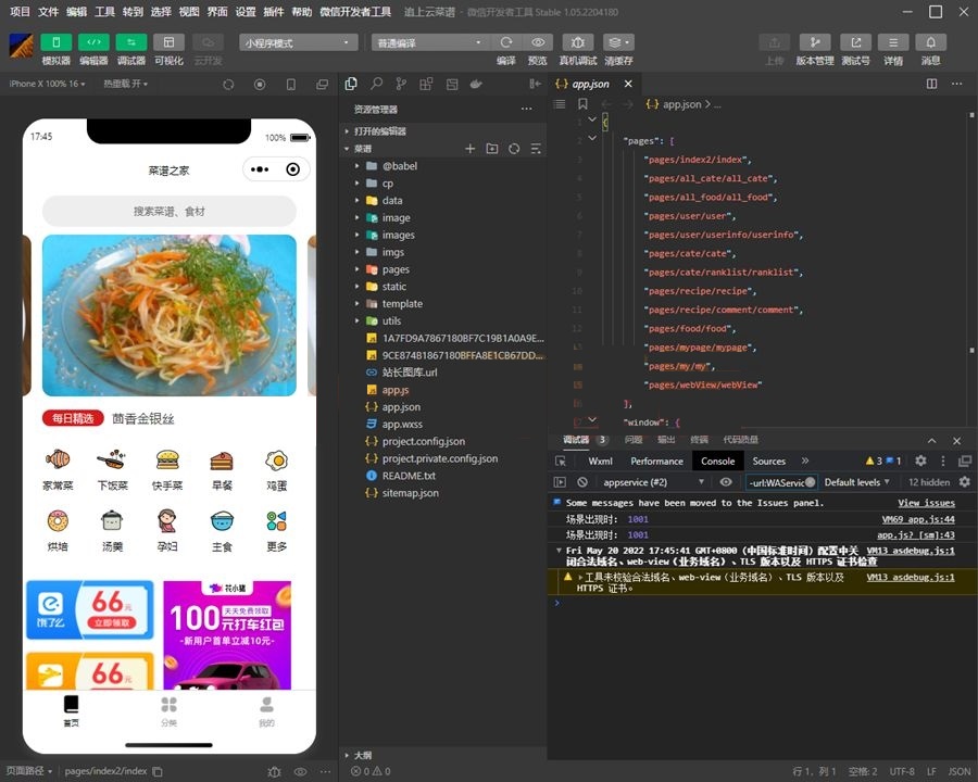 本菜谱小程序源码为云开发,不需要域名和服务器即可搭建小程序,直接导入开发者工具即可上传审核。