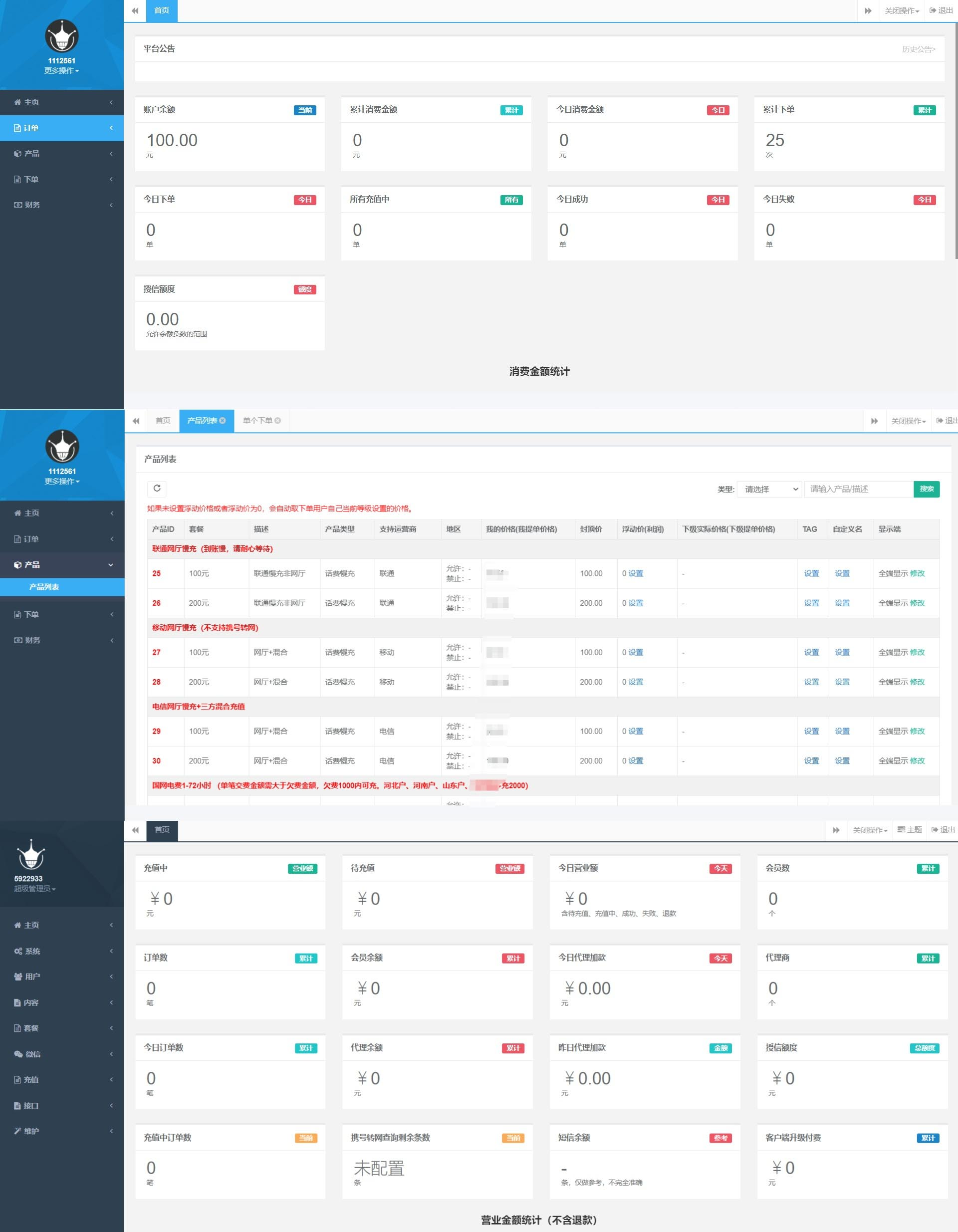 大猿人中控充值系统是目前市面上使用最广泛的话费充值中控系统。支持代理分发、公众号H5、API接口对接等功能。也是目前最完善的中央控制系统。前端是完全开源的。授权已被豁免!支持公众号H5、分发等功能!